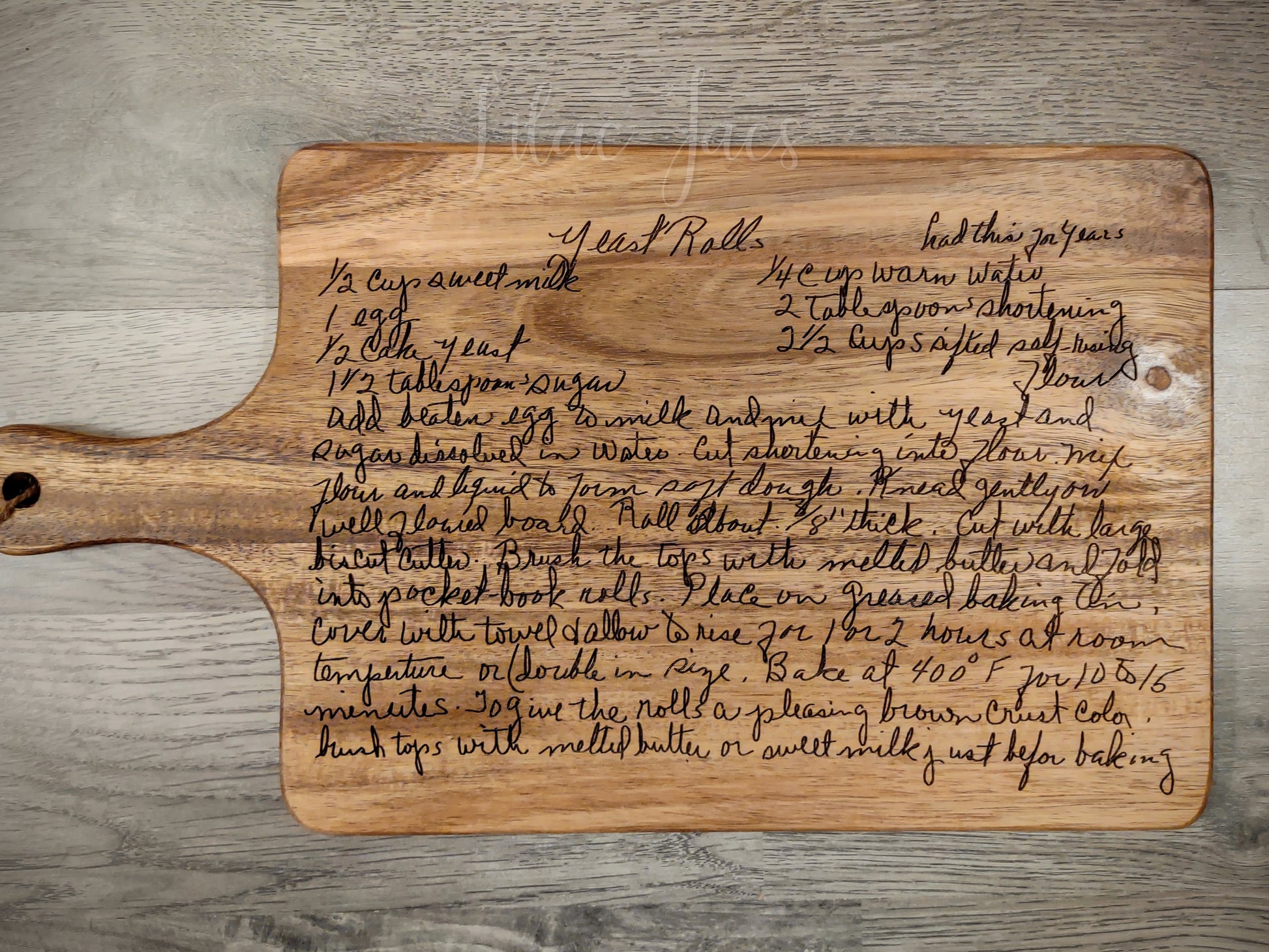 Due to the nature of the wooden cutting boards, the finished product will vary from these photos. There also may be variations in engrave color due to wood grain.